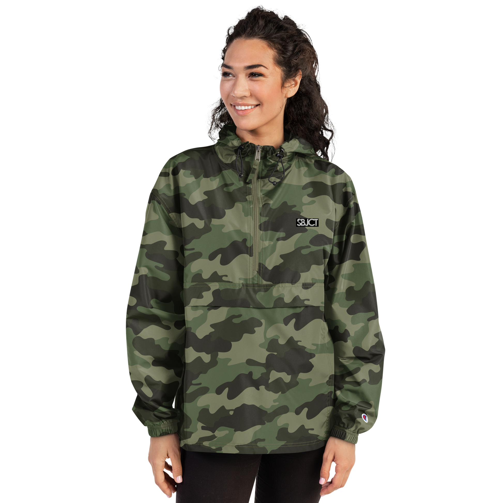Protect yourself from the elements with this SBJCT | Champion packable jacket. This wind and rain resistant polyester jacket has a practical hood, front kangaroo pocket (good for holding site plans), and zipped pouch pocket which you can pull out and use to scrunch the jacket into for convenient storage.